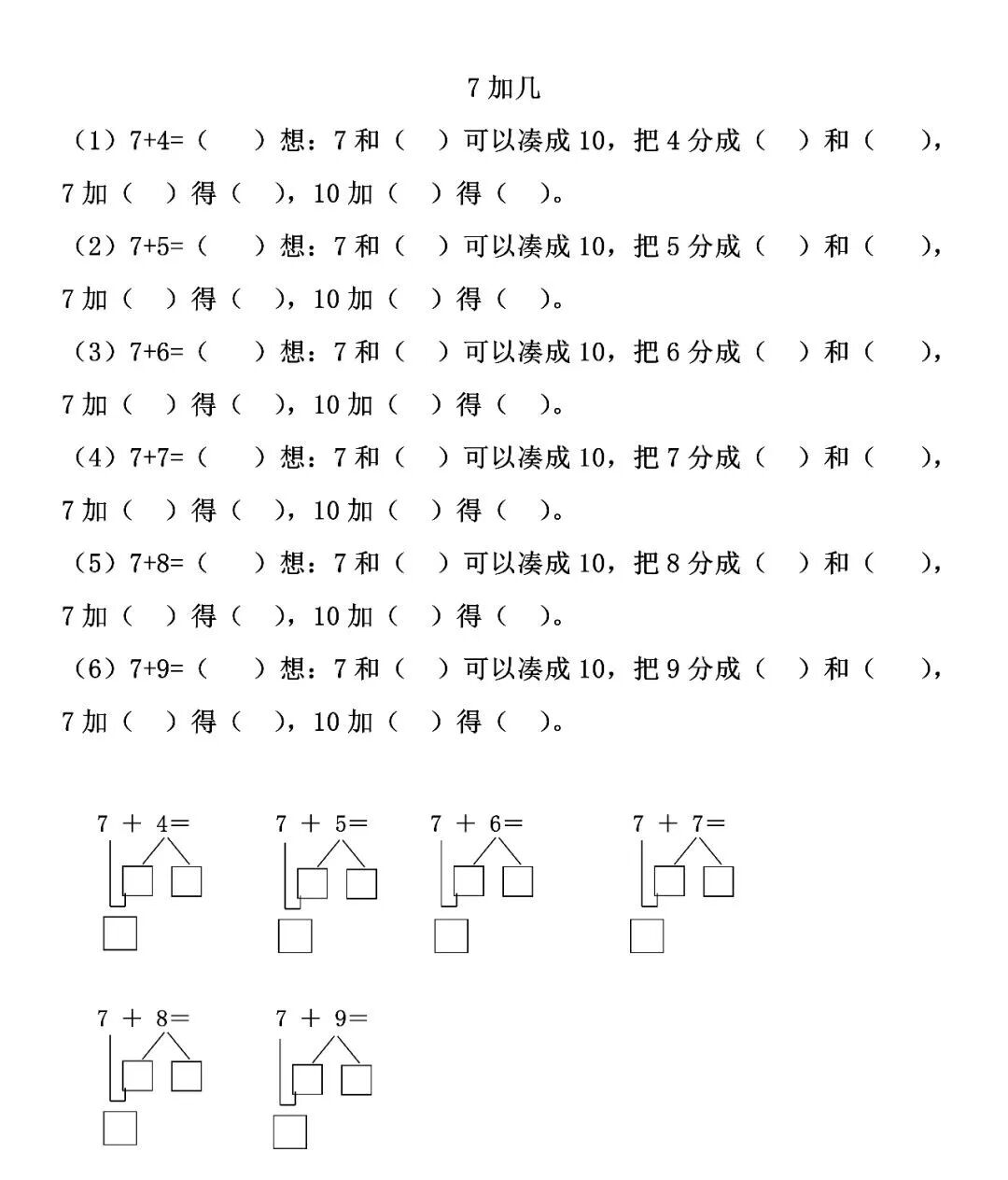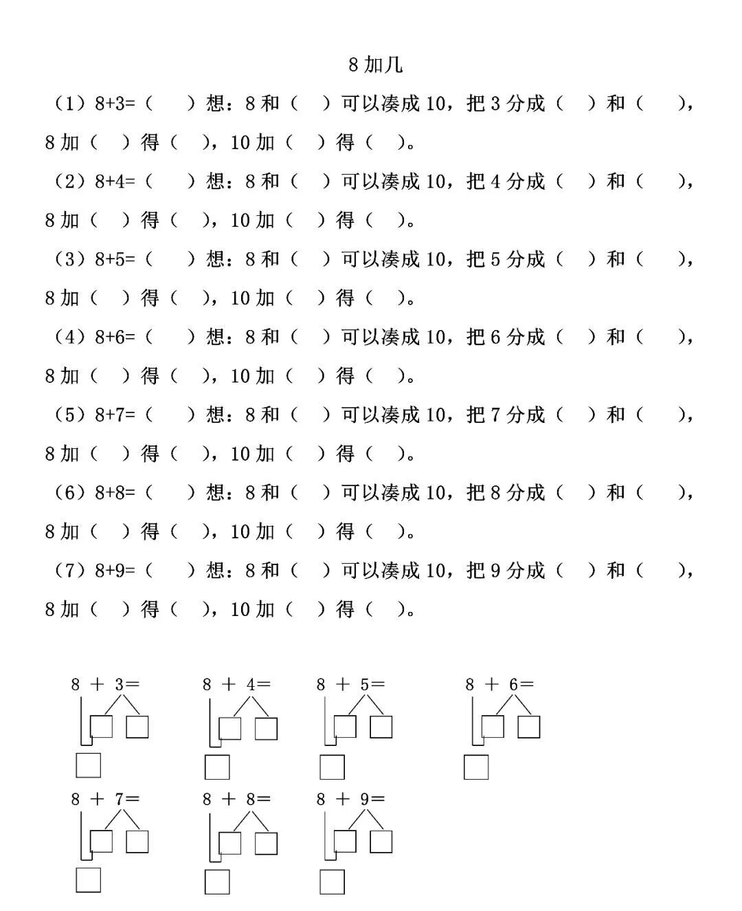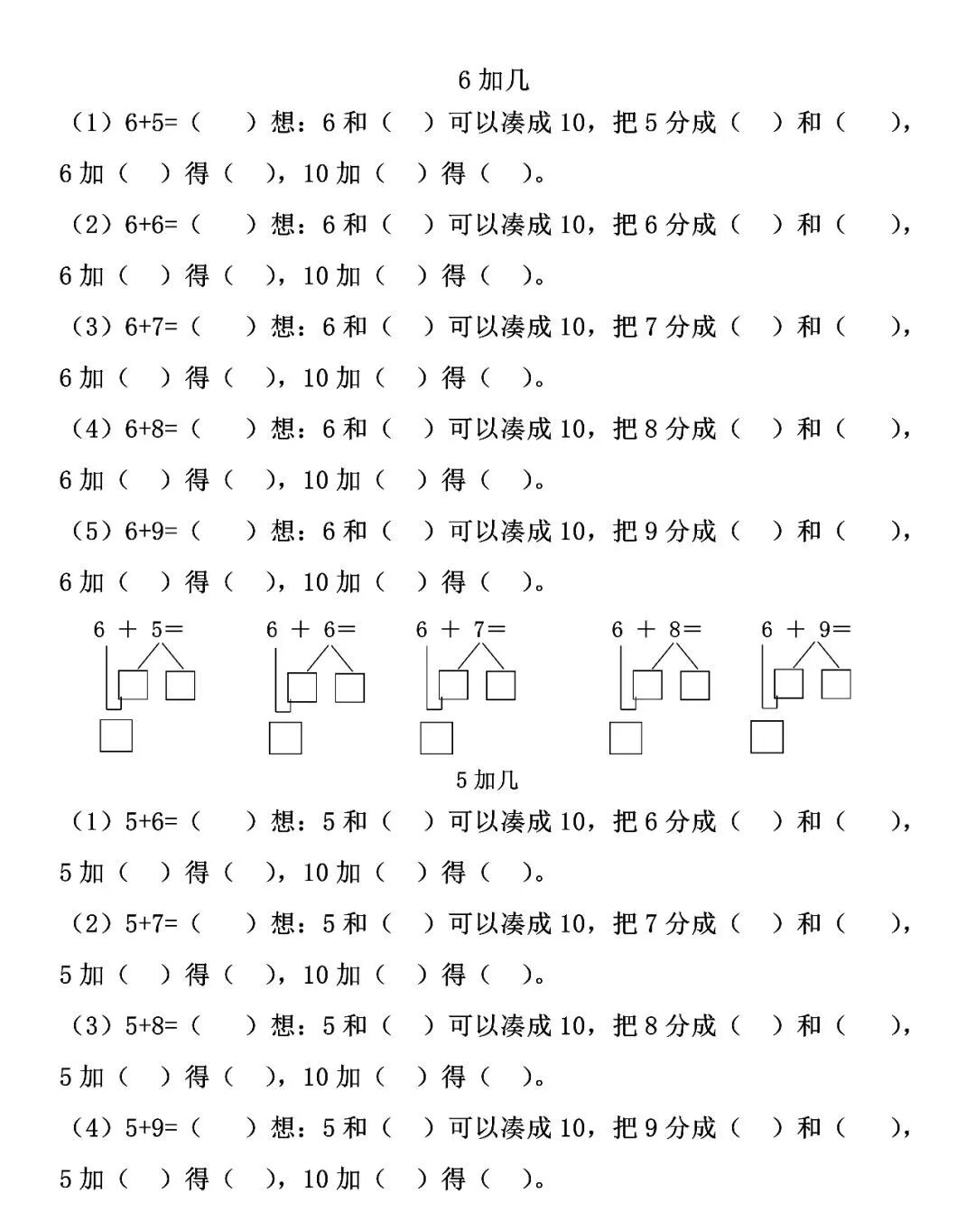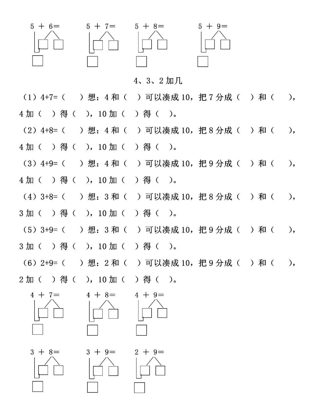 王老师整理了小学一年级上册数学(20以内进位加法)填空题、口算题大全!基础题型训练!