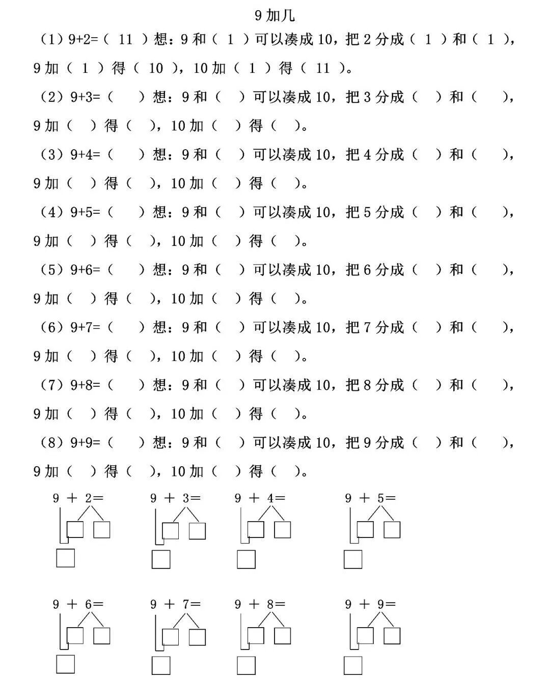 9+3= 9+2= 9+7=