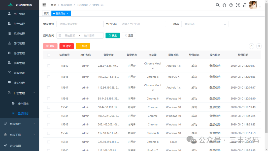 - 登录日志:系统登录日志记录查询包含登录异常。