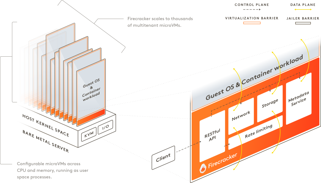 近年来,一种超轻虚拟化的思想开始流行开来,亚马逊推出的firecracker就是一个典型的代表。
