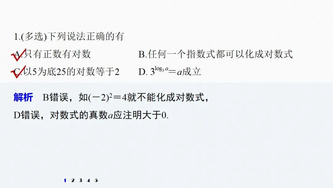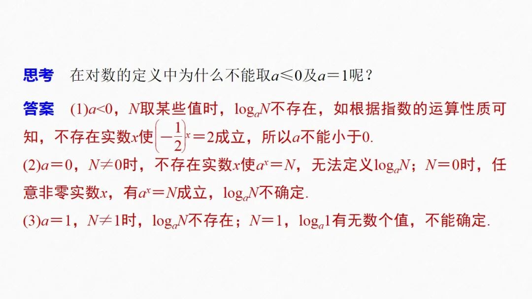思考 在对数的定义中为什么不能取a≤0及a=1呢?