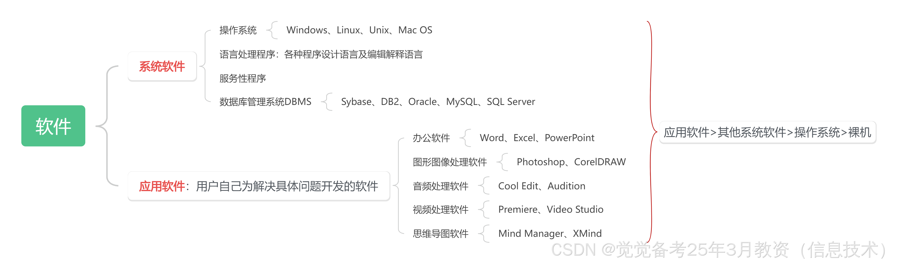 计算机软件系统是指在硬件设备上运行的各种程序以及有关资料。(程序+文档+数据)
