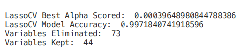 print(“Variables Eliminated: “, str(sum(model_coef == 0)))