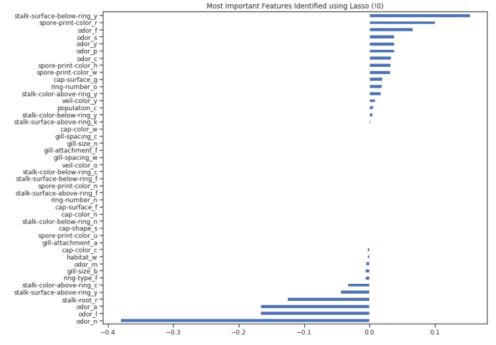 plt.title(“Most Important Features Identified using Lasso (!0)”)