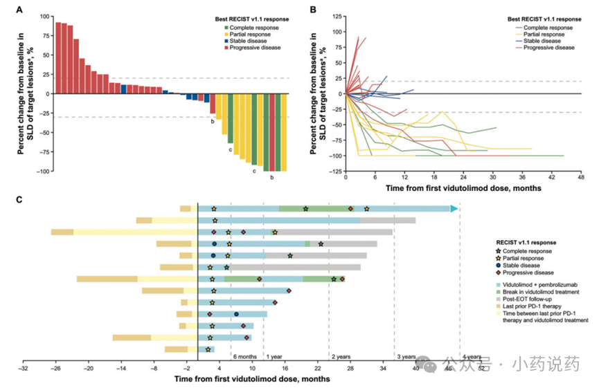 在本研究的剂量递增阶段,有44名曾接受抗PD-1治疗的晚期黑色素瘤患者入组。44名患者中有11名(25%;95% CI,13%–40%)在使用RECIST v1.1的疗效评估标准进行评估时获得PR或CR,其中4名CR,7名PR。