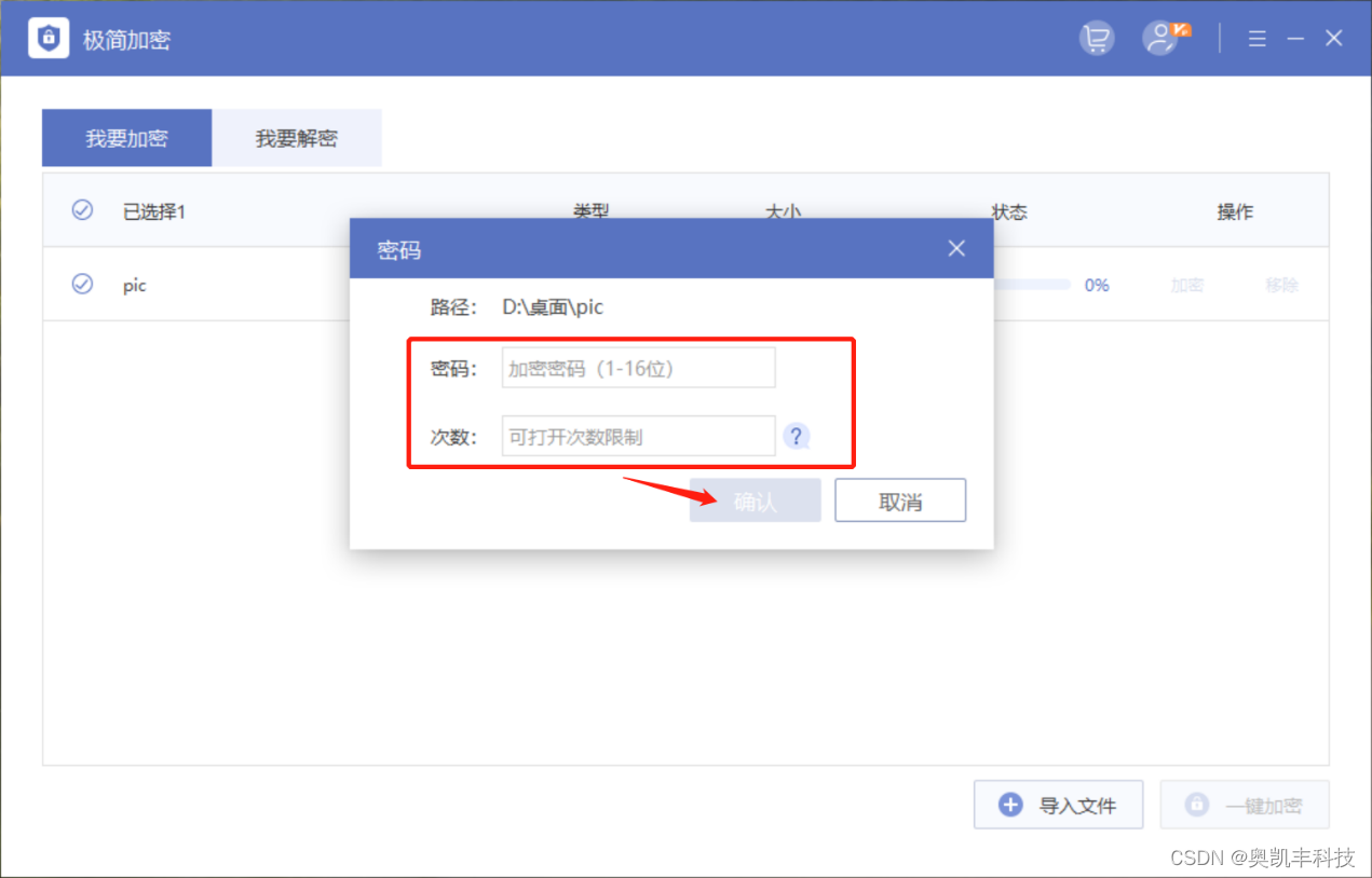其实文件加密存在的最大风险就是忘记密码,一旦忘记了密码,文件将无法解密,也意味着文件内容将无法使用,和大家分享加密软件,奥凯丰 极简加密,支持多种格式文件进行加密,一键加密、使用方便