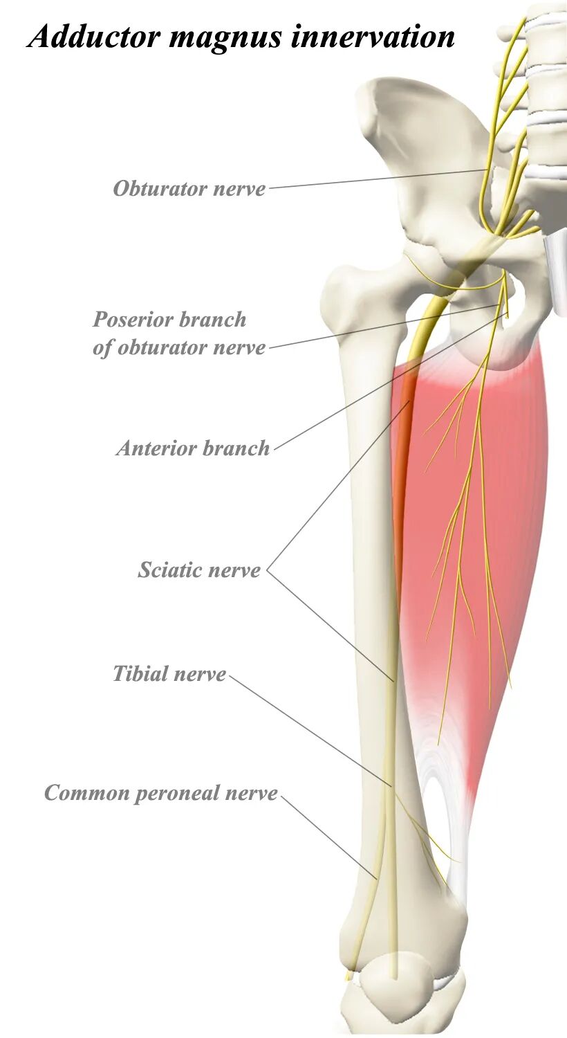 2)内收大肌(Adductor Magnus)为双神经支配,分别是Sciatic nerve and Obturator nerve