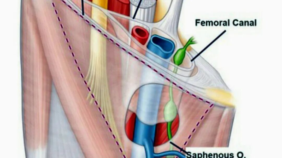 15)股管内(femoral canal)结构排列(从外到内):神经(Nerve),动脉(Artery), 静脉(Vein), 淋巴(lYmphatics),