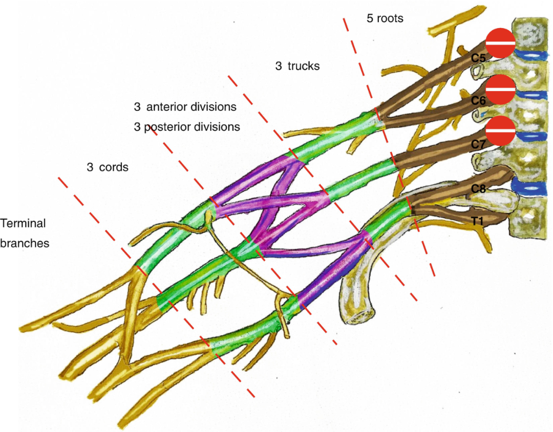记忆方法:C5,6,7(Seven),raise your arms to heaven (C5,6,7,伸开你的胳膊去天堂)。