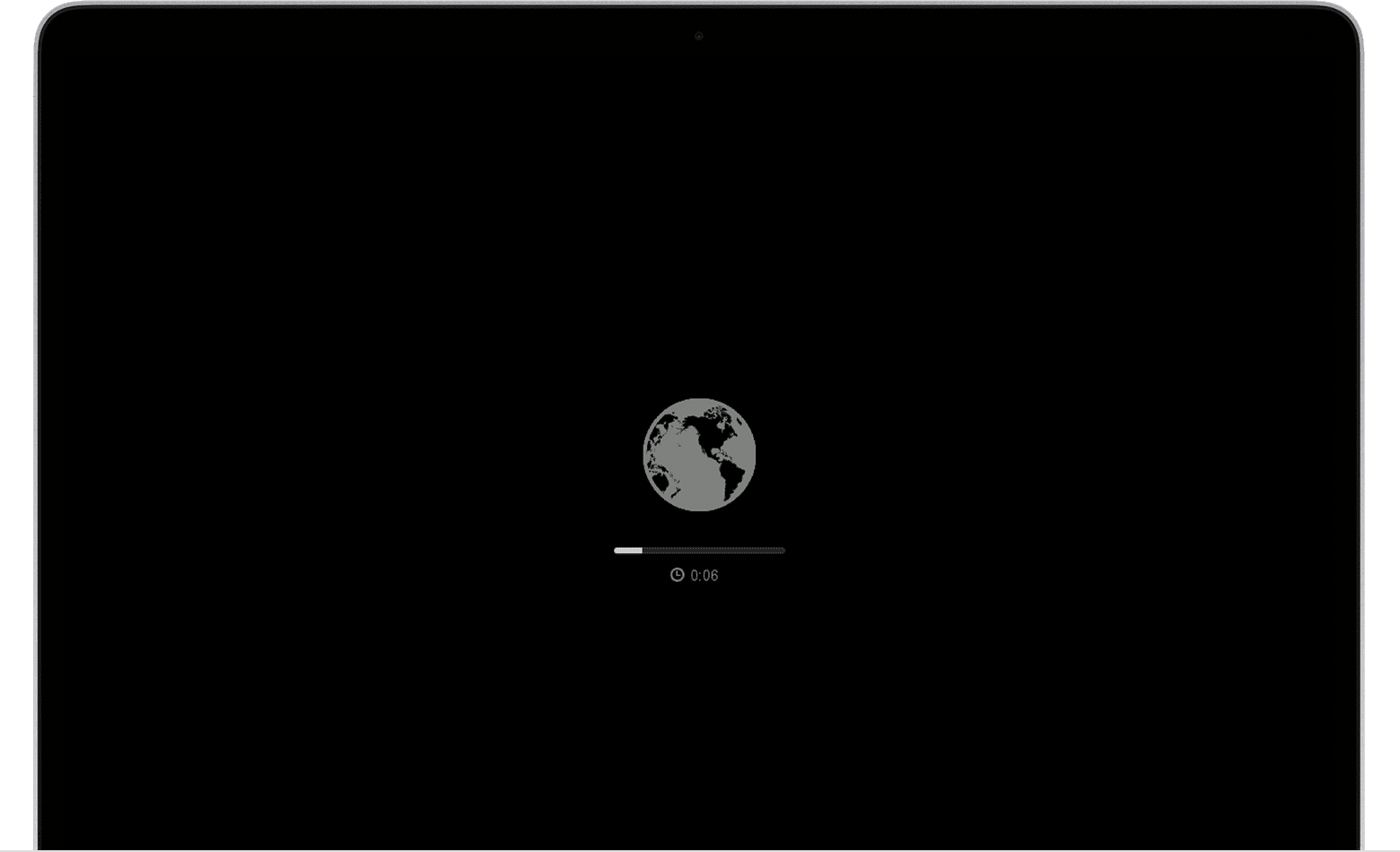 1、如果您的 Mac 无法从内建的 macOS 恢复系统启动,它可能会尝试通过互联网从 macOS 恢复功能启动。出现这种情况时,您在启动期间将会看到旋转的地球,而不是 Apple 标志: