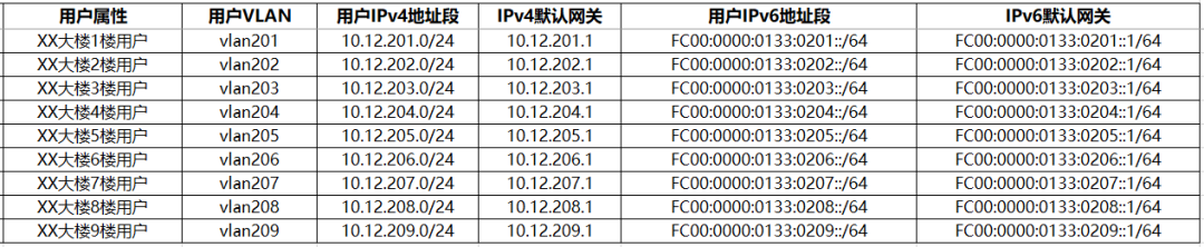 IPv6组网VLAN,原则上直接复用IPv4网络VLAN,构建双栈。