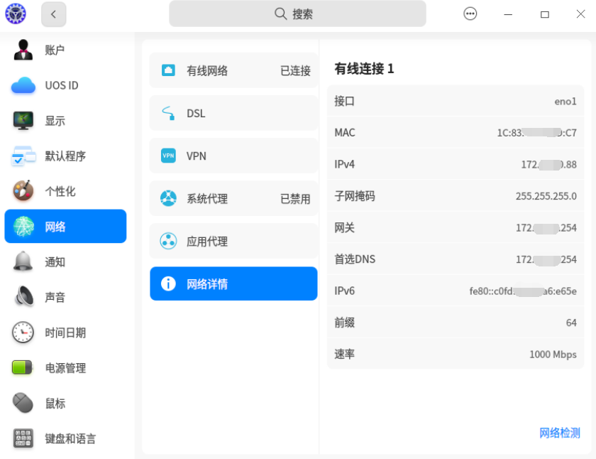 (1)电脑终端打开网卡设置,查看是否有IPv6协议栈——“Internet协议版本6(TCP/IP6)”(以windows和统信UOS为例)。windows网卡设置和统信UOS网卡设置如下图: