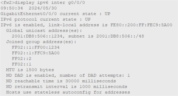 通过查看命令,可以看到防火墙端口已配置IPv6地址,说明防火墙支持IPv6协议。