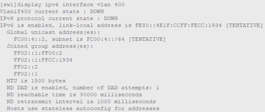 通过查看命令,可以看到交换机VLAN端口已配置IPv6地址,说明交换机支持IPv6协议。