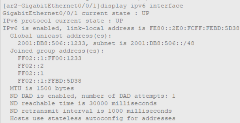 通过查看命令,可以看到路由器端口已配置IPv6地址,说明路由器支持IPv6协议。
