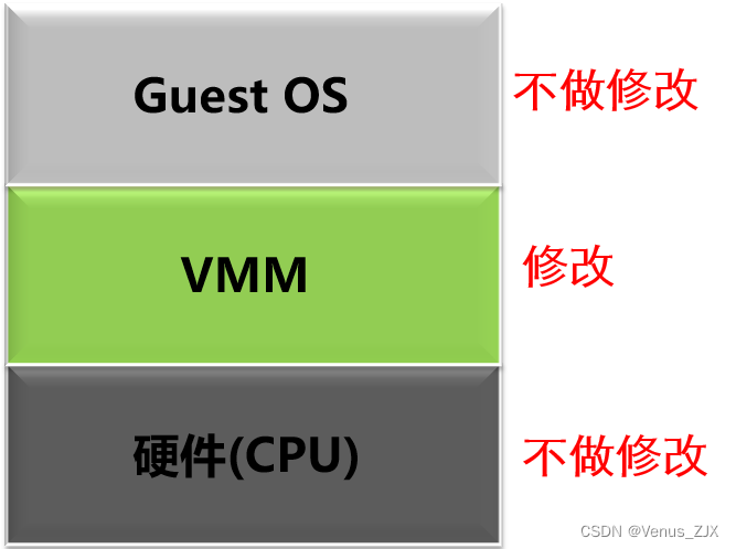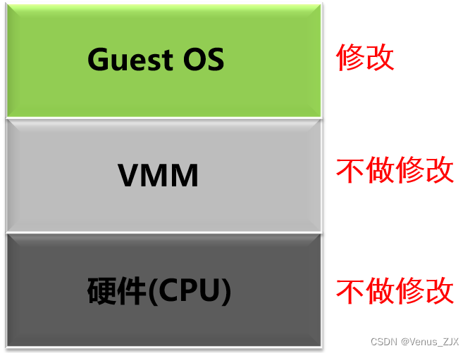 优缺点:优点是Guest OS无需修改,缺点则是扫描指令耗时长及需要二进制翻译,整体性能差、效率低。