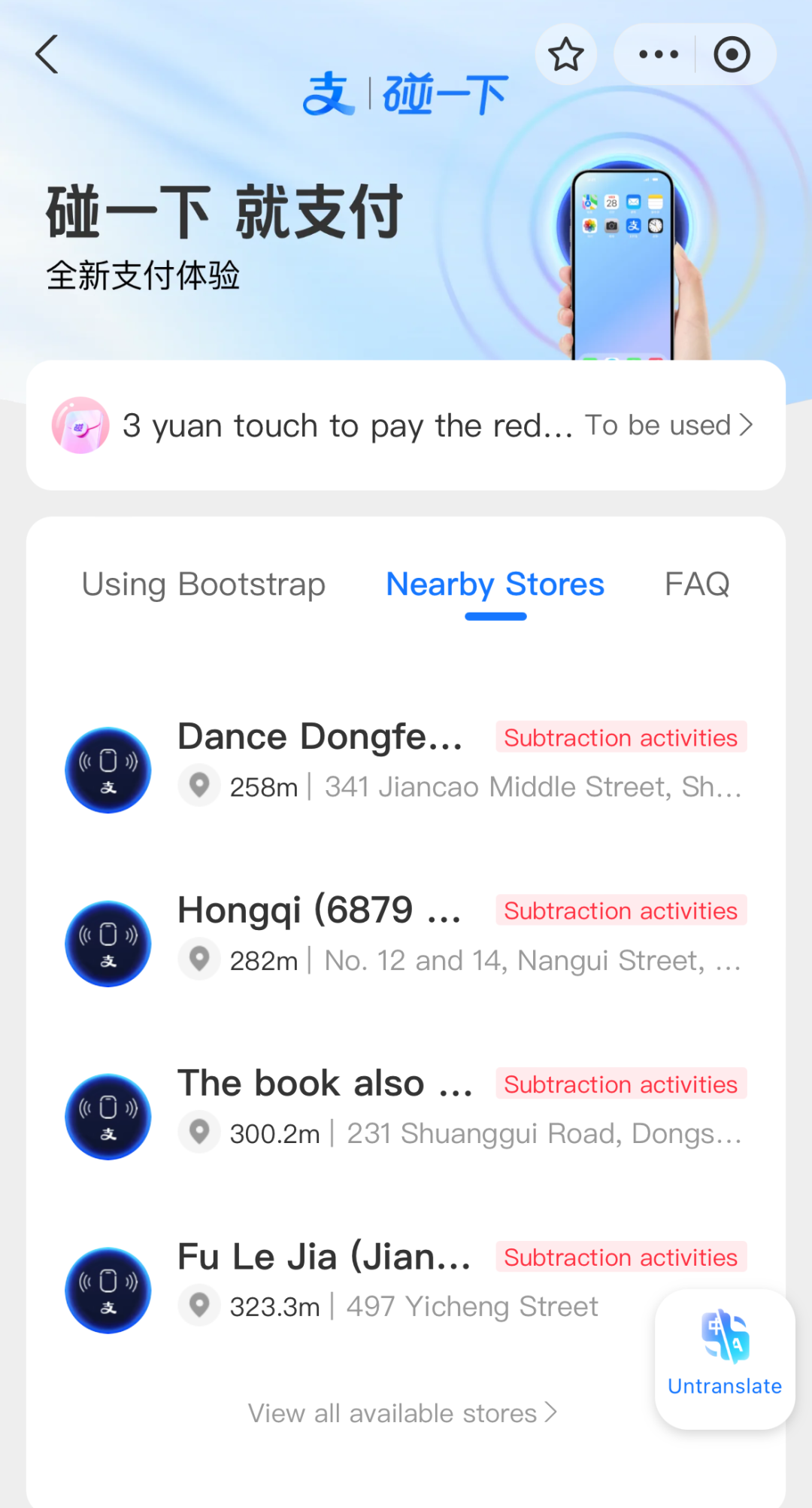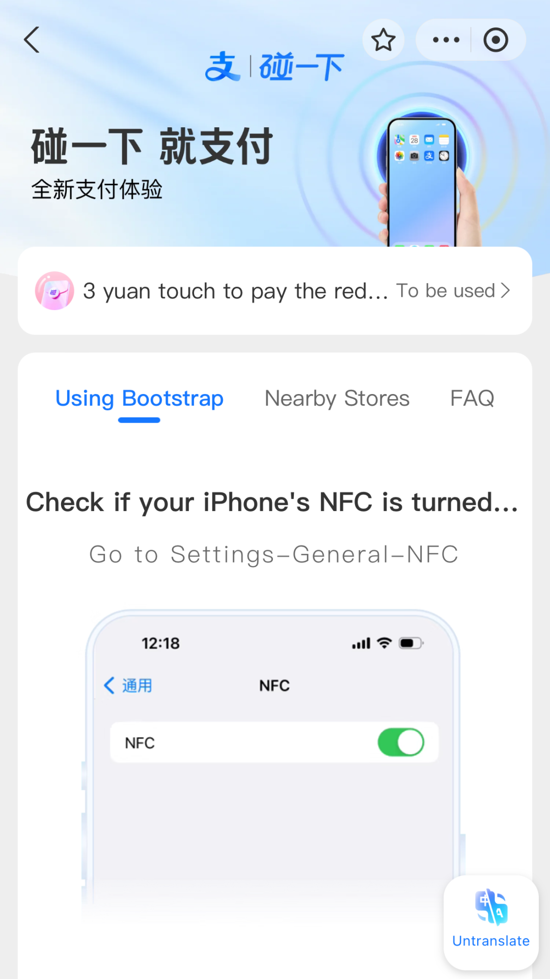 第一次体验的朋友,可以在支付宝App搜索“碰一下”,查看指引。