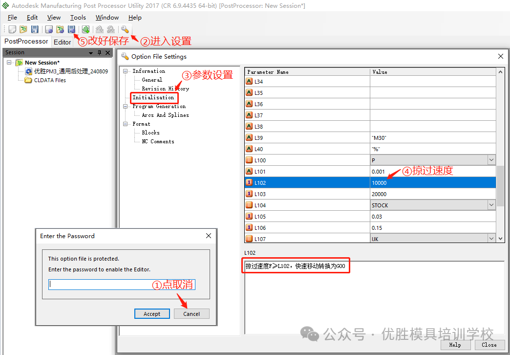 优胜PM通用后处理快速进给怎么设置为G01/G00?
