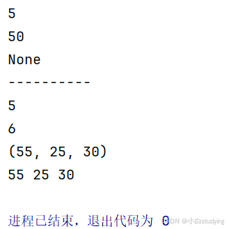 返回值可以是一个值,或多个值,如果返回的值是多个,结果是一个元组类型。