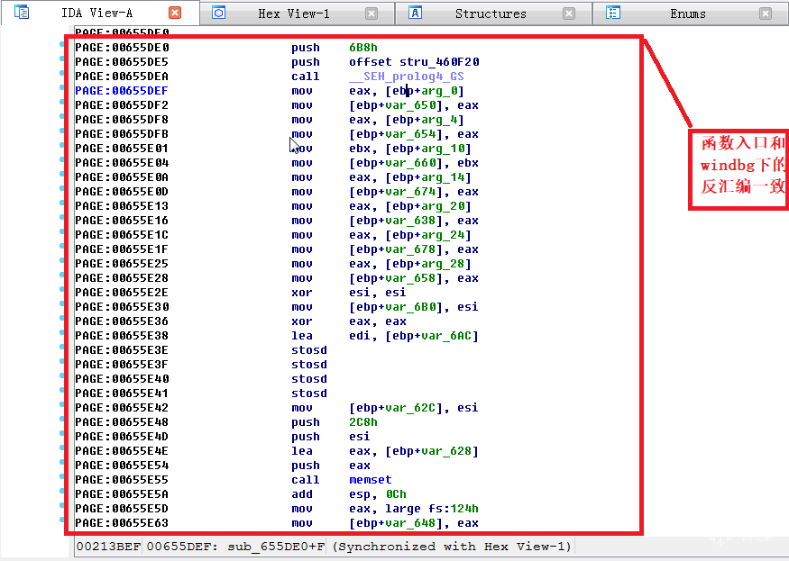 2.对比IDA和windbg的反汇编的函数内容