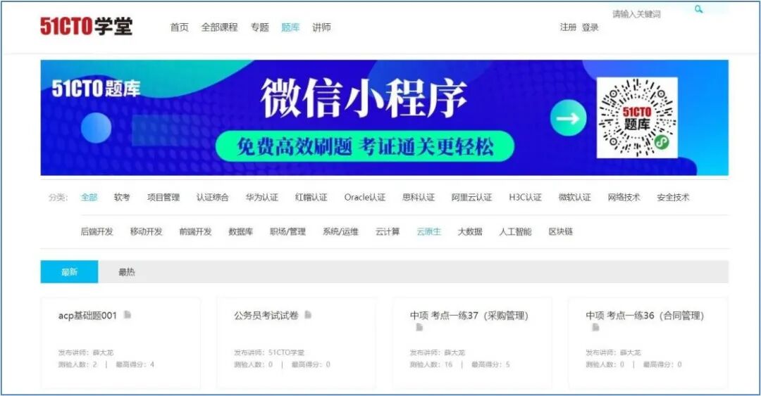 覆盖软考、华为认证、职场/管理等多个学科的名师精编试题,逐层进阶,学习效果显著。