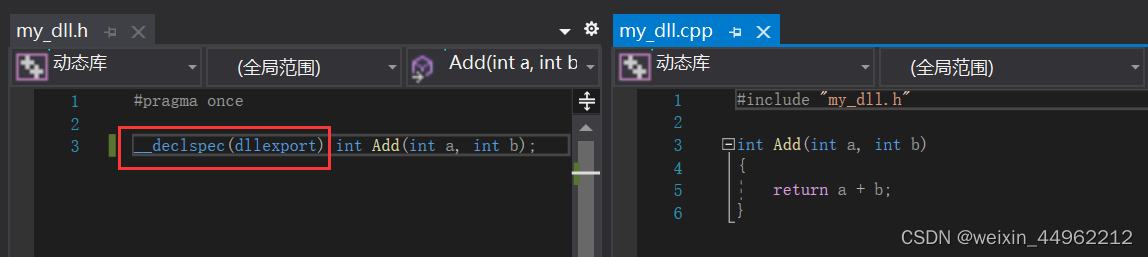 2、增加__declspec(dllexport),将动态库函数声明为导出函数
