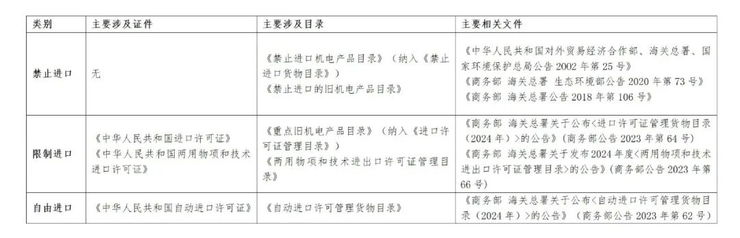 •限制进口类:有下列情形之一的机电产品,限制进口: