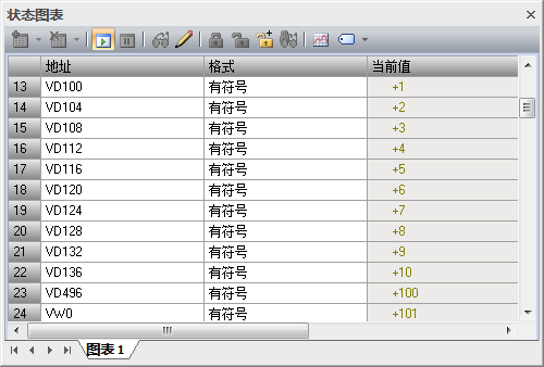 从VD100开始的100双字分别为VD100-VD496写入1-100数字。