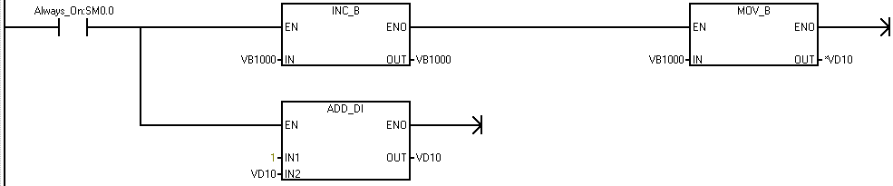 (3)写入指针与指针偏移,当执行一次循环VB1000值加一,把VB1000写入至VB100,当循环一次指针偏移一个字节。