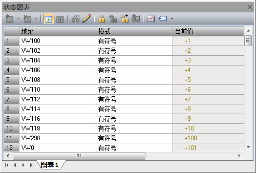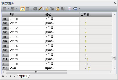 从VW100开始的100字分别为VW100-VW298写入1-100数字。