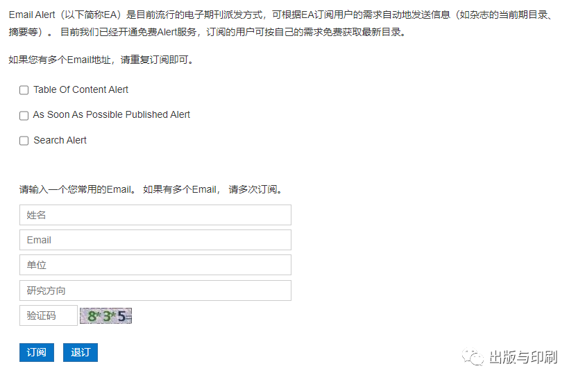 1.本刊已经开通免费Email Alert服务,订阅的用户可按自己的需求免费获取电子刊