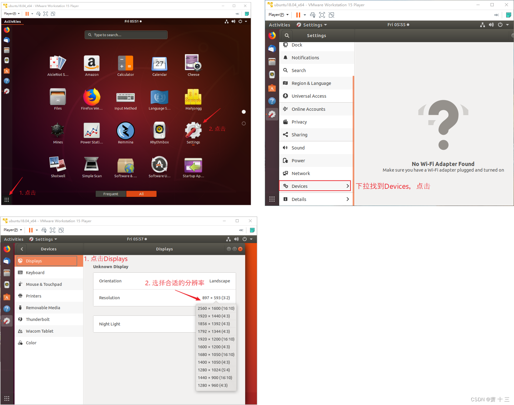 在我们的后续学习过程中,很少使用Ubuntu的桌面系统,都是远程登录上去的。但是如果Ubunut的桌面显示太小、太大,总是让人不舒服。这时可以修改屏幕分辨率,方法如下: