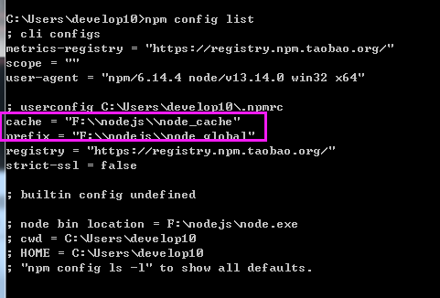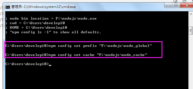 设置全局模块的安装路径到 “node_global” 文件夹,设置缓存到 “node_cache” 文件夹 放在F: odejs