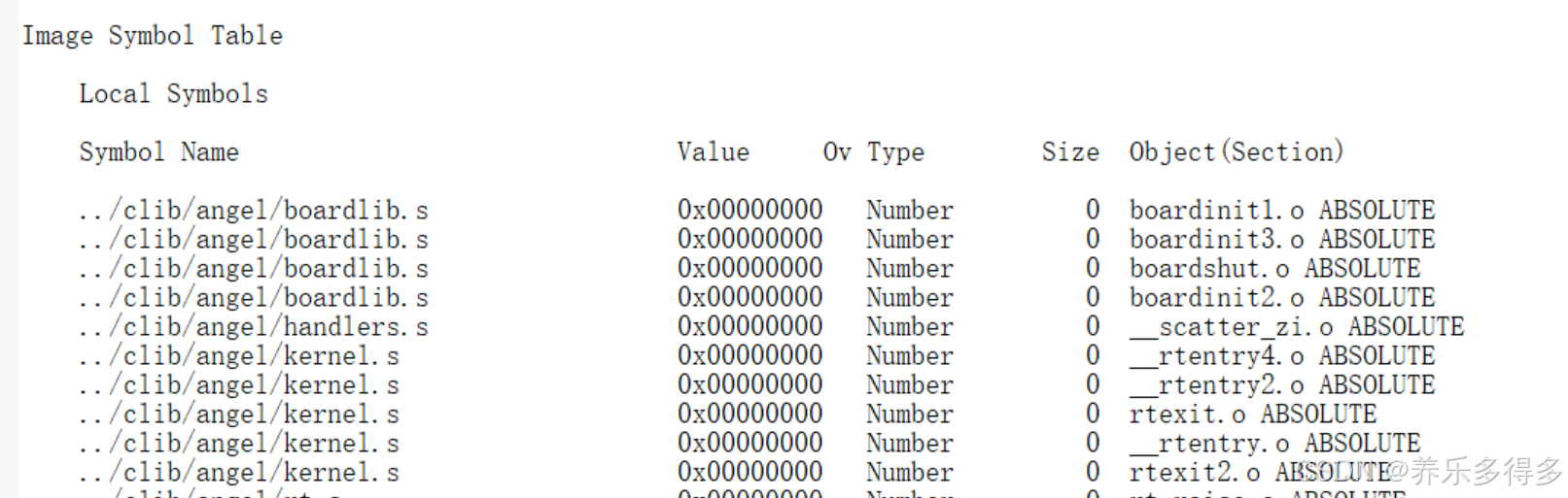 符号类型大概有几种:Number、Section、Thumb Code、Data等;