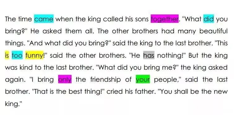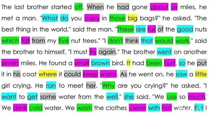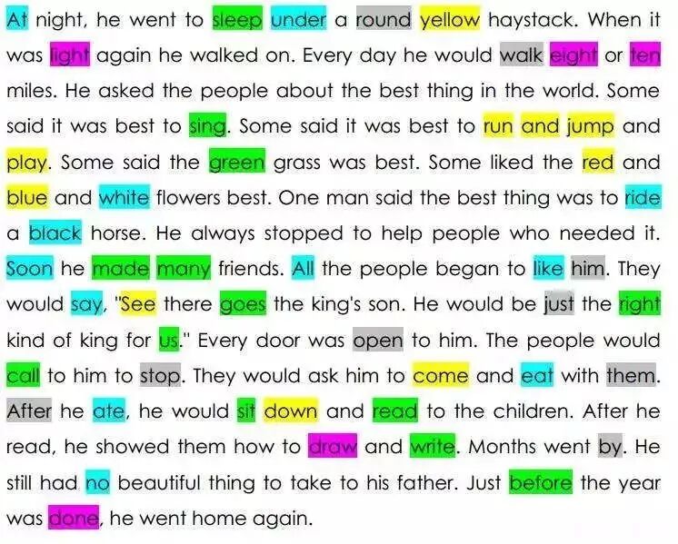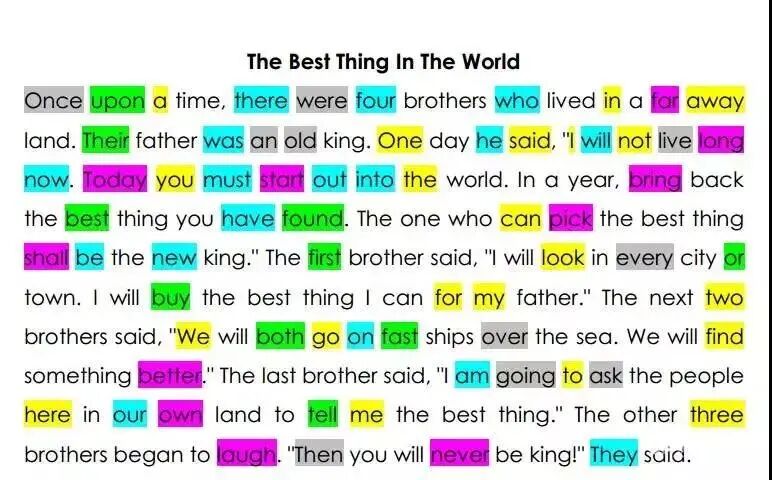 游戏规则:这是一篇包含了 220 个常见常用单词,并根据使用频率用不同颜色标注出来了的文章《The best thing in the world》。
