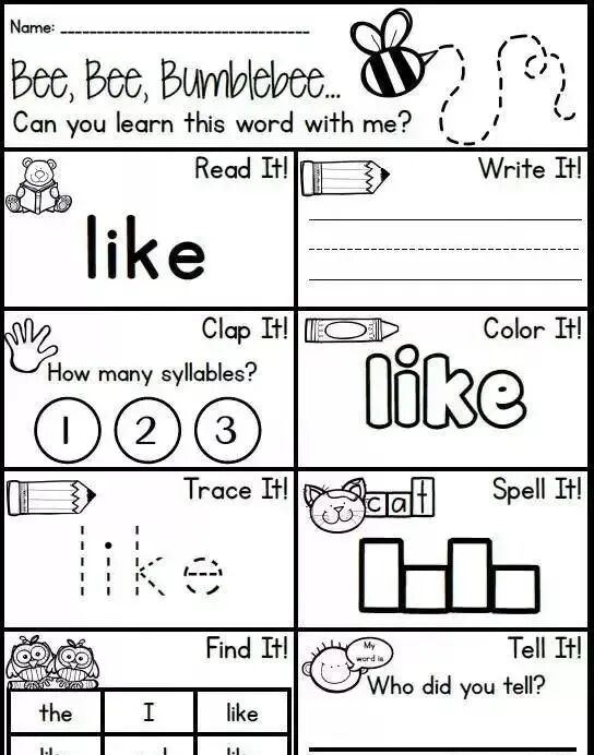 游戏规则:利用各种各样的练习纸帮助学生练习高频词。