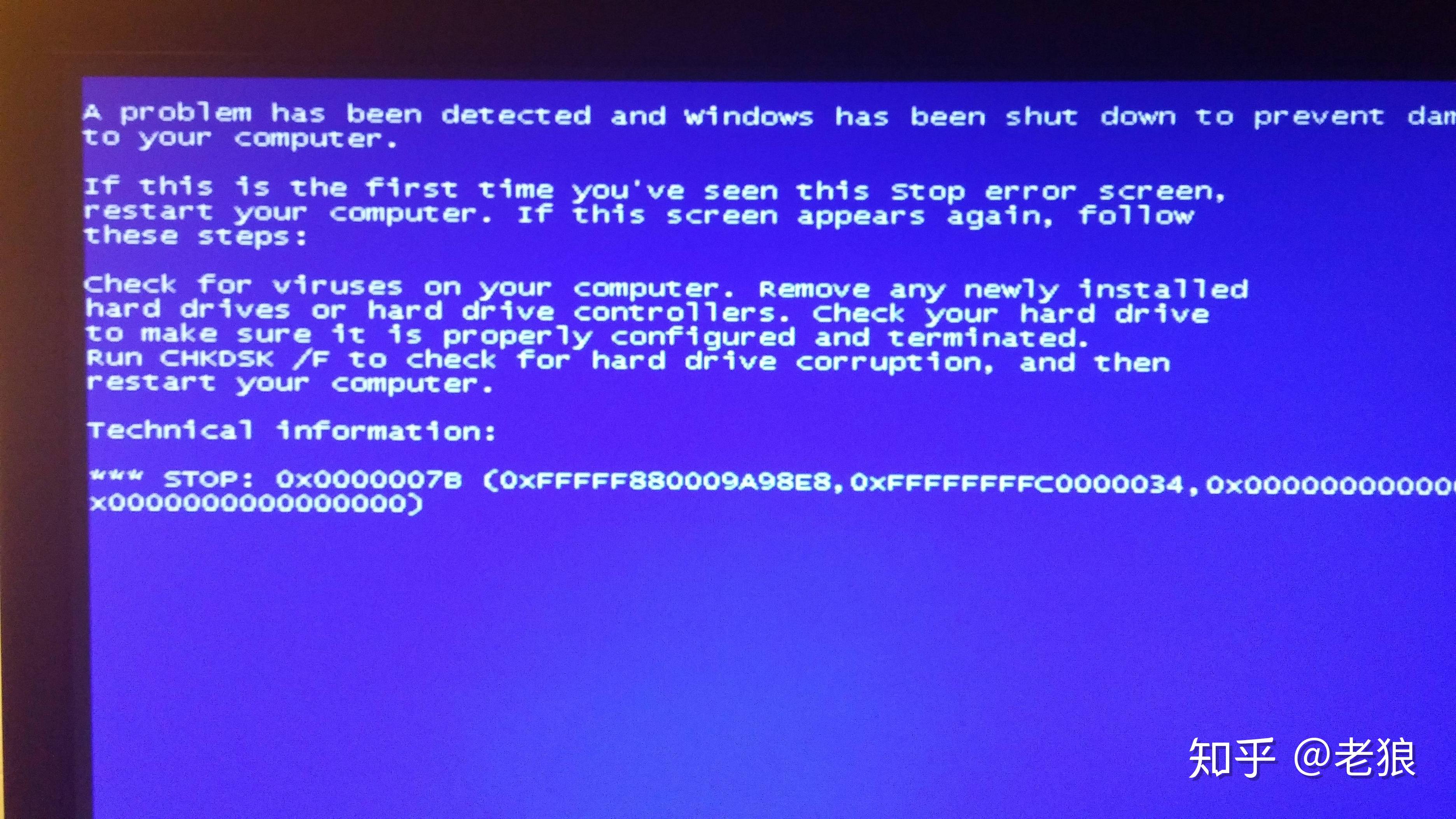 原因很简单,Windows为了替大家”节省“硬盘空间,并没有把所有安装光盘带的驱动在安装时,都放到目标硬盘驱动列表中去。安装用IDE,就只有IDE的驱动在其中,安装用AHCI,就只有AHCI的驱动。换了硬盘控制器的模式,再次启动操作系统就找不到控制器的驱动程序了,这就是蓝屏的原因,找不到启动设备!这就是7B的意思:“STOP 0x0000007B INACCESSABLE_BOOTDEVICE”.