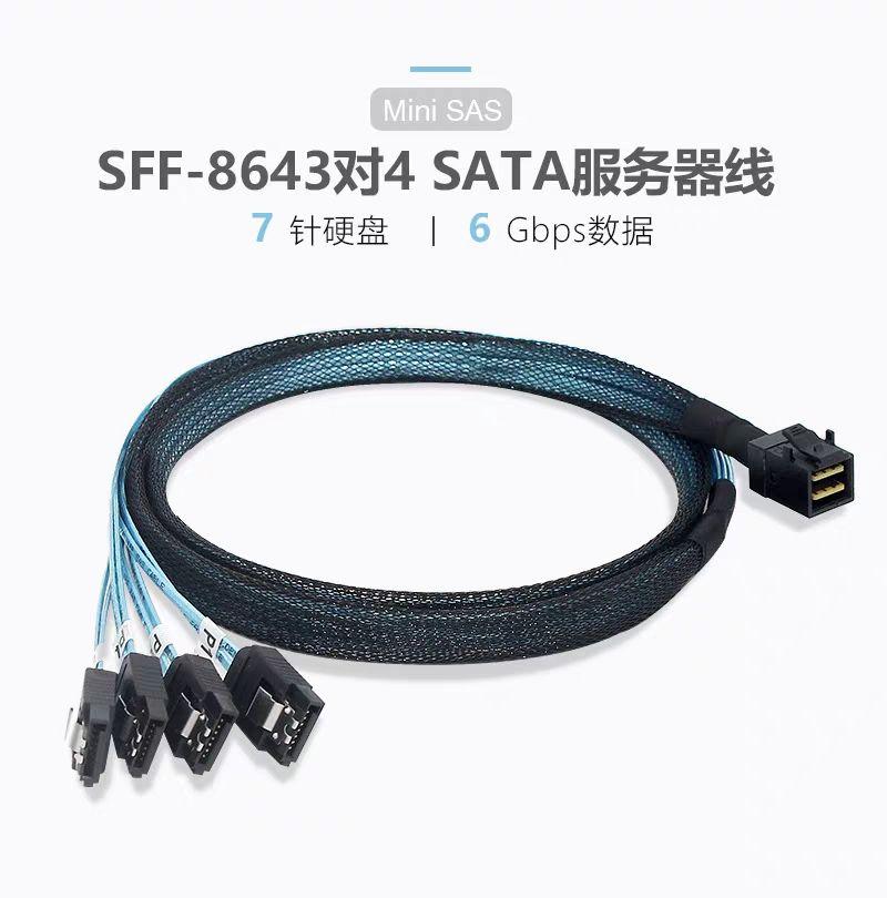 还有这种SAS转4个SATA的线,我没用过这种服务器主板。根据我的理解,主板这个接口可以认1块PCIe x4硬盘,也可以直接认4块SATA硬盘。