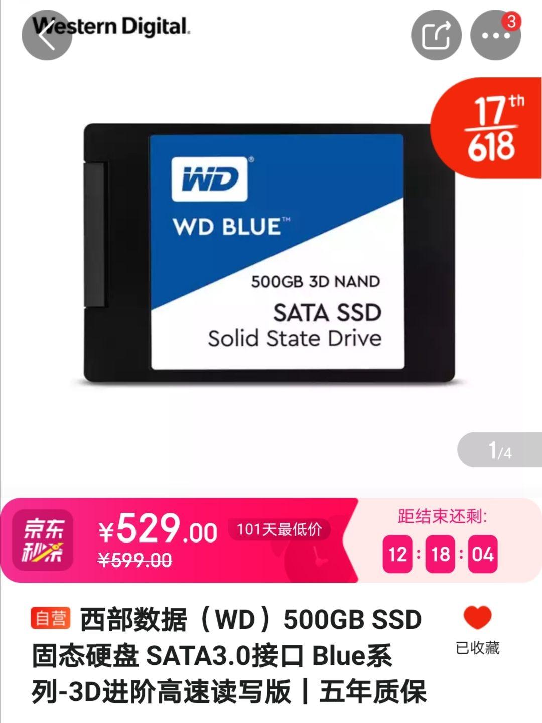 在乎质保不在乎性能的,西部数据sn500 500g只需要400左右
