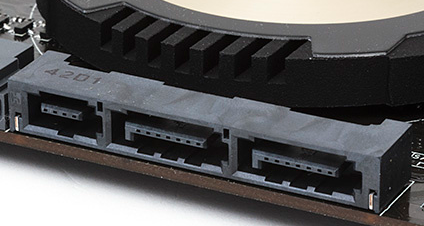 7.2USB3.Xgen1引出口,每个口为19Pin设计,一个角无针防呆。每个口可引出2个USB3.Xgen1口(每个口5Gbps带宽),同样用于机箱前面板一个以上的TypeA母口。