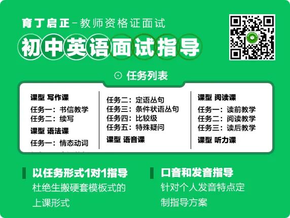 育丁启正1对1英语面试指导:初中英语阶段(教资和考编)
