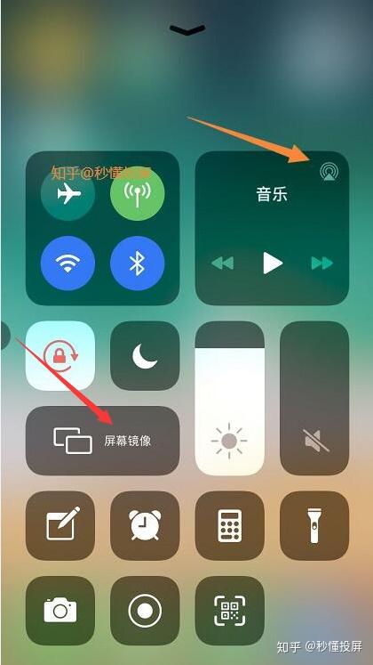 步骤:在苹果手机主界面,上滑或苹果X系列、IPAD下滑,在控制界面的右上角点击音乐图标,打开之后会搜索连接电视。