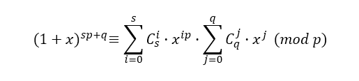 ( 1 + x ) ^ n ≡ ( 1 + x ) ^ ( sp + q ) ≡ ( ( 1 + x ) ^ p ) ^ s · ( 1 + x ) ^ q ( mod p )