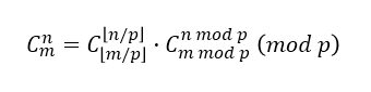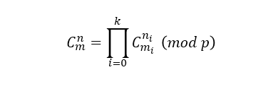 当然,如果不想设其他字母,可以写成 C ( m,n ) = C ( m mod p,n mod p ) · C ( m / p,n / p ),其中 / 表示除得的商。这样的表示方法是不是很优美呀?