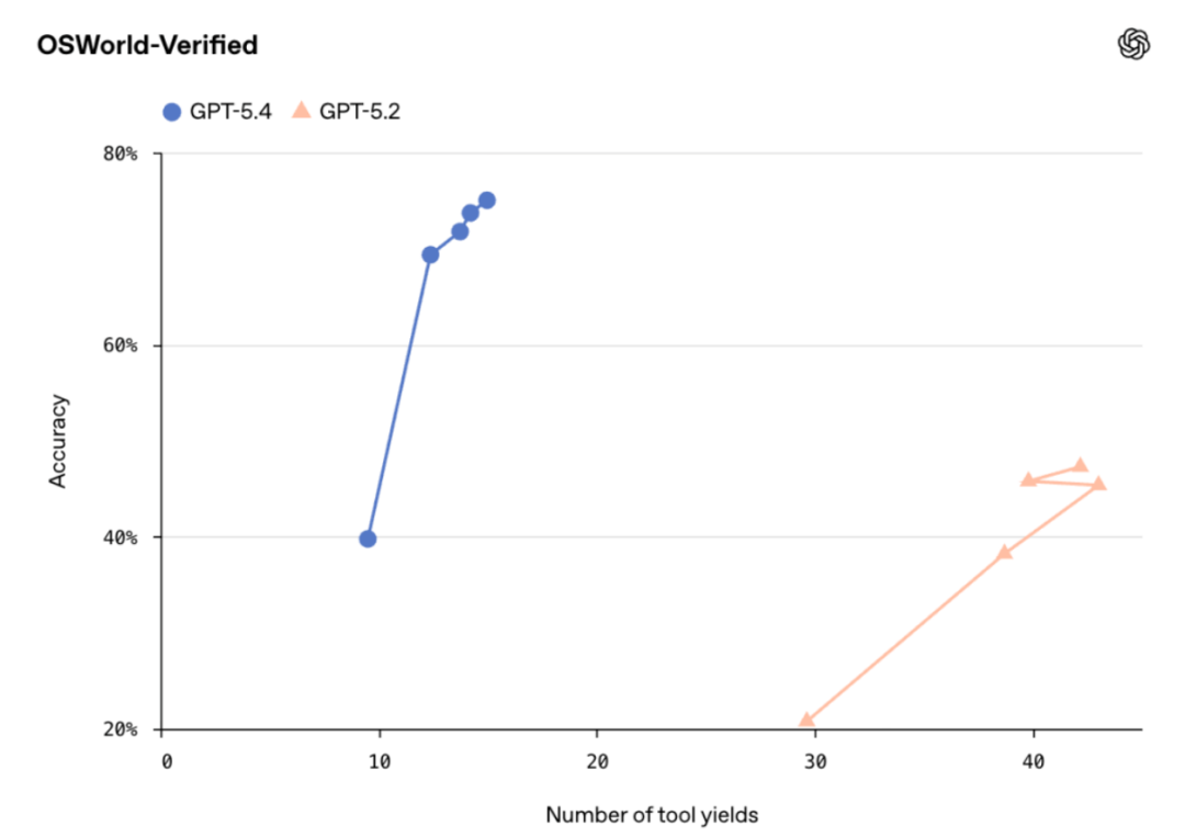 在衡量模型操作桌面环境能力的OSWorld测试中,GPT-5.4拿下了75.0%的成功率,超过了人类平均水平(72.4%)。当导师没空手把手教你操作某个复杂的分析软件时,GPT-5.4或许能成为那个带你快速上手的领路人。
