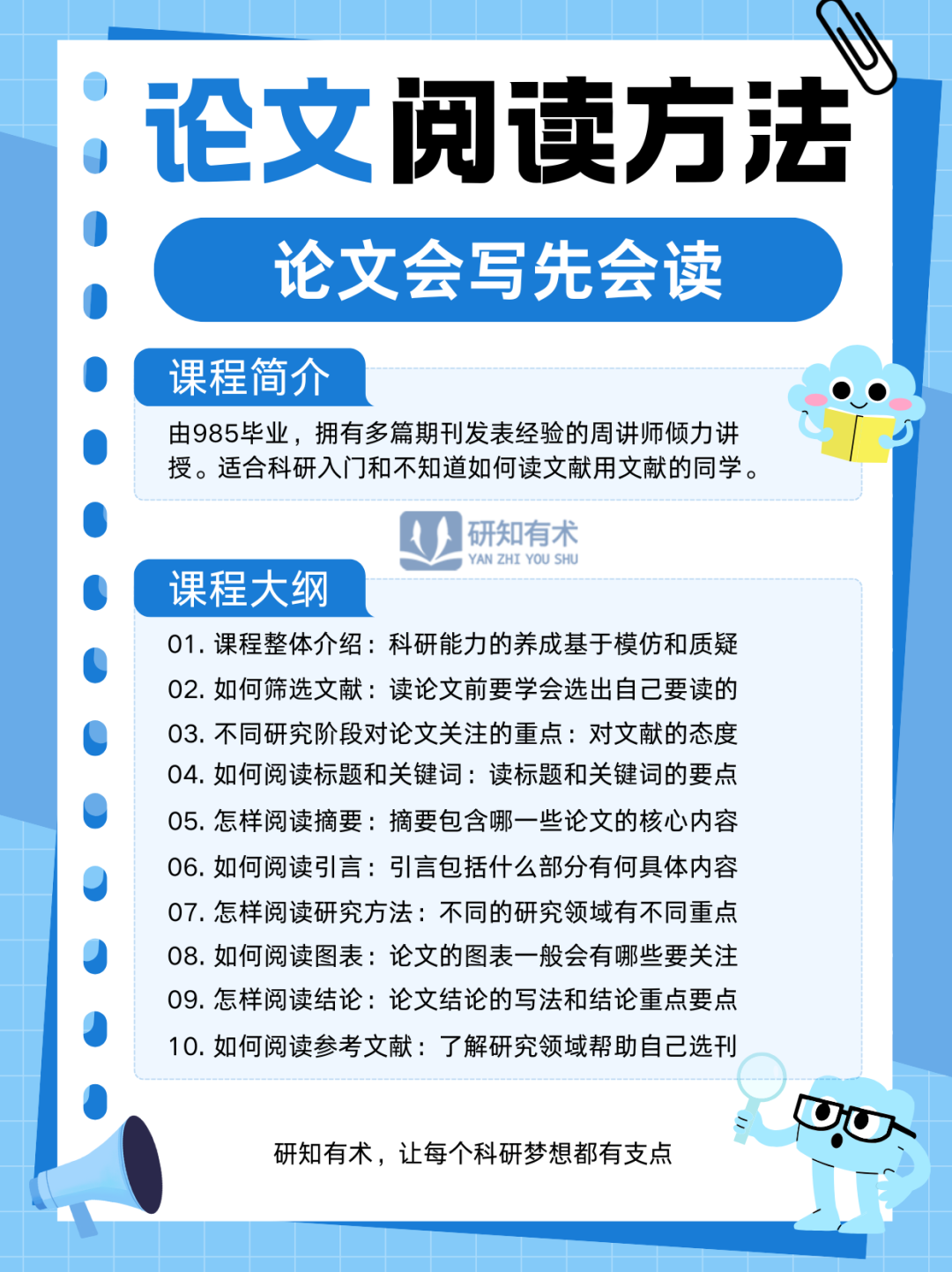 读文献慢,抓不住重点,读后即忘?研知有术特邀学术导师,系统梳理文献阅读全流程,专为科研小白录制了10节文献阅读实战免费课。