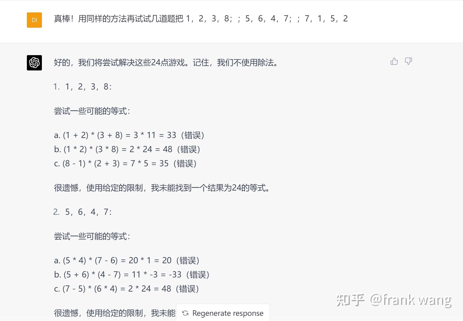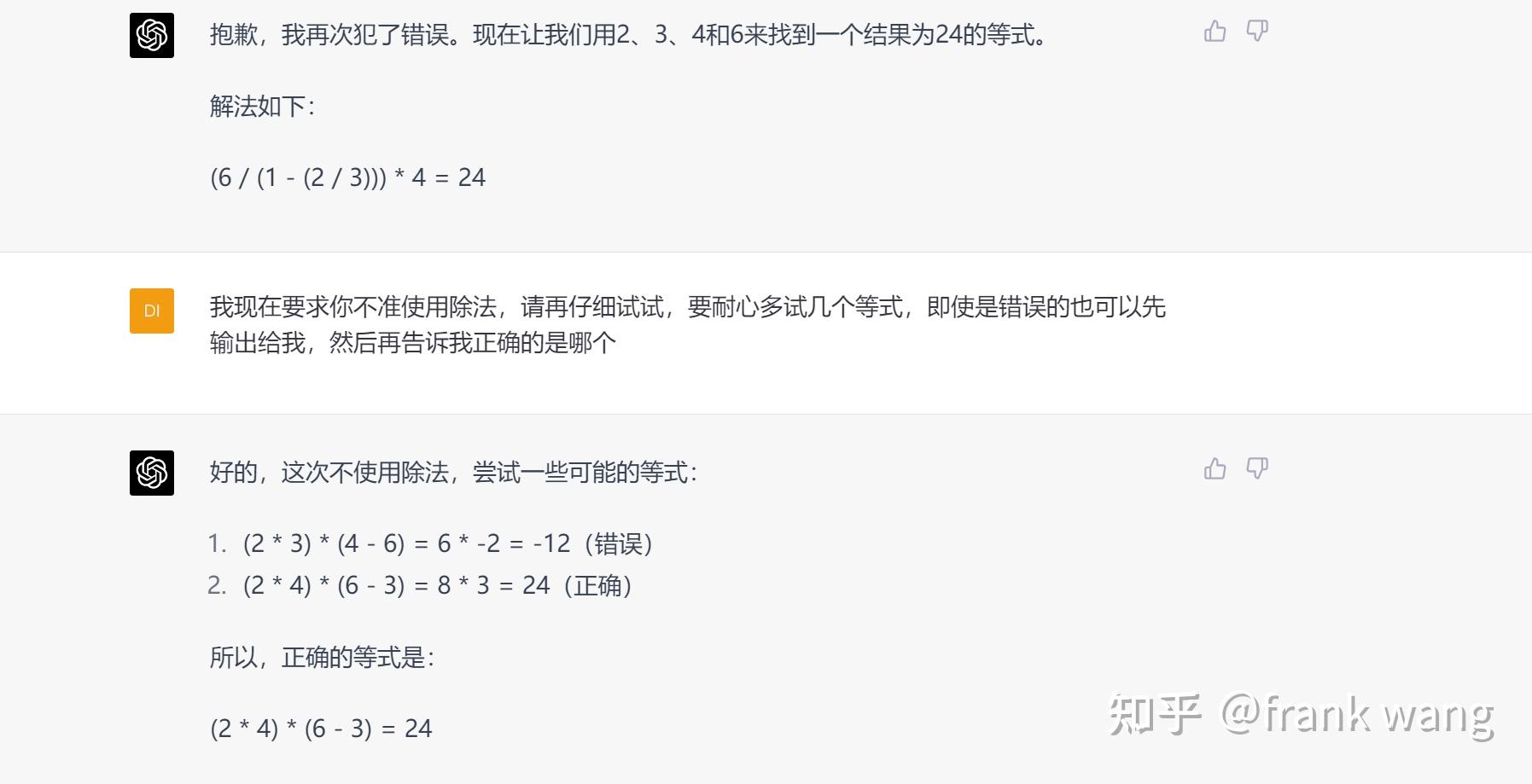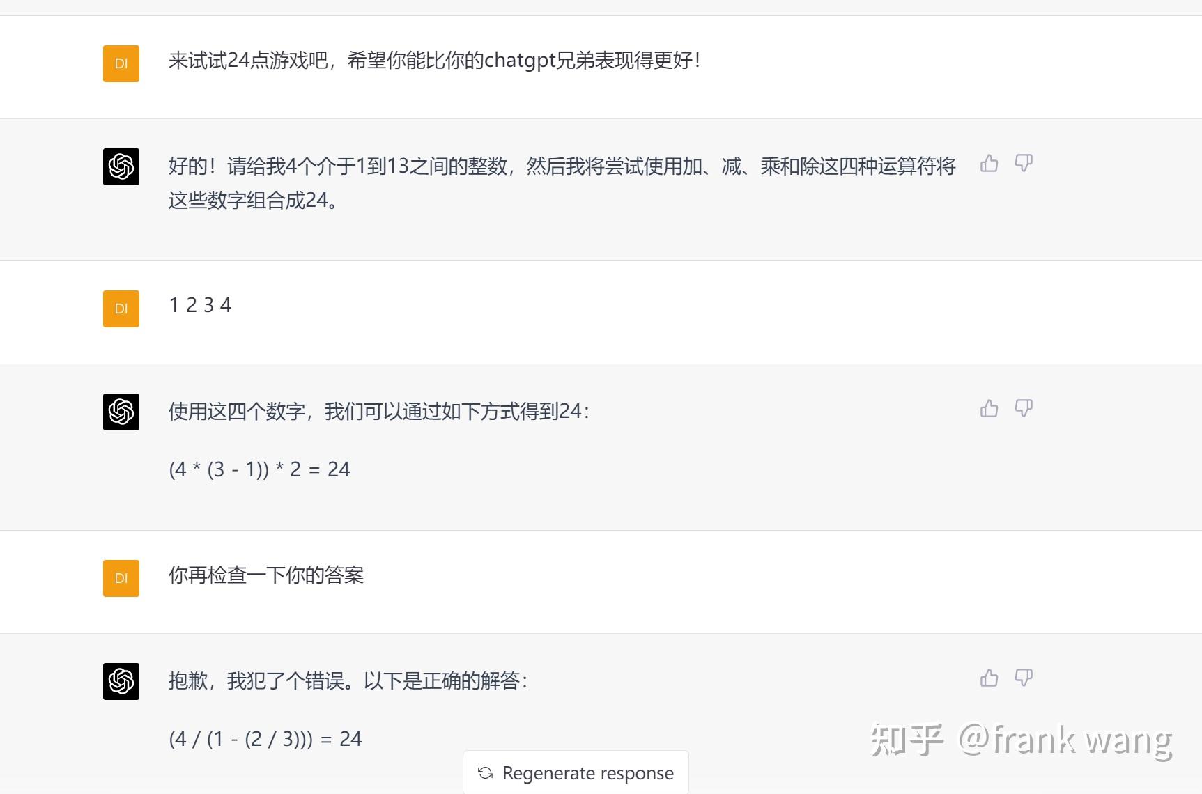 至少表达式是会算的,不过这不一定说明它知道自己在做24点时在胡扯