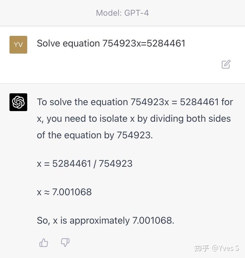 所以GPT目前还没有什么计算和推导能力。和它在其他方面的回答一样,它对数学问题的回答完全基于它之前对相关文本的学习。你可以把它想成一个博览群书但是对数学没有任何理解能力的人。见过原题或者几个题目可以拼凑出来就能做对,没见过就根据类似的输入去猜。这个策略在不需要精确结果的领域基本上都能有不错的输出,在数学上就显得有所欠缺。