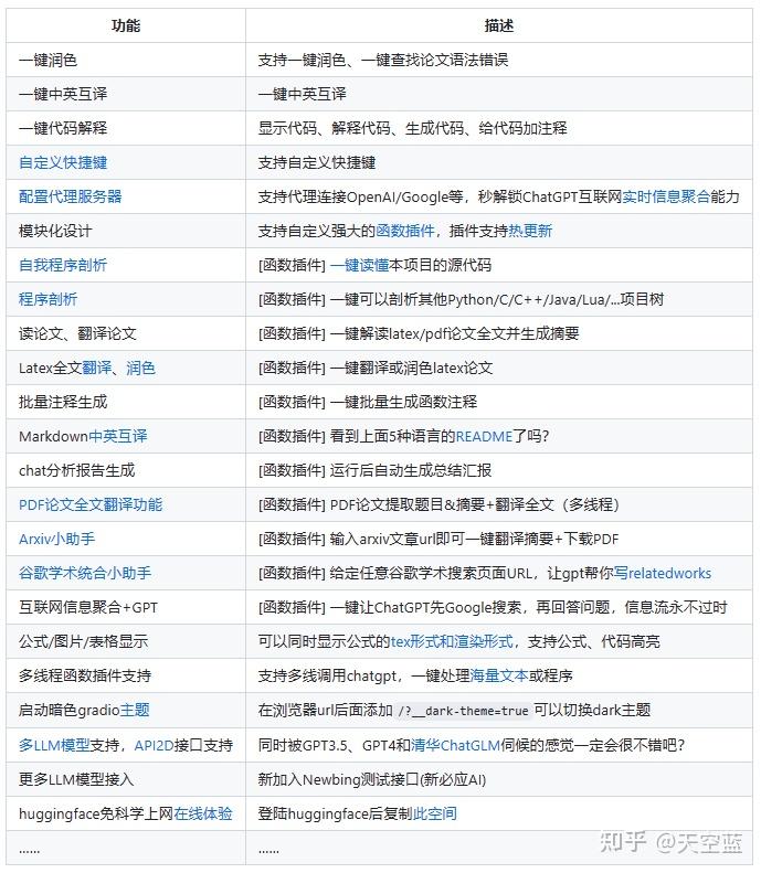 ChatGPT学术版目前已集成的功能如下表所列: