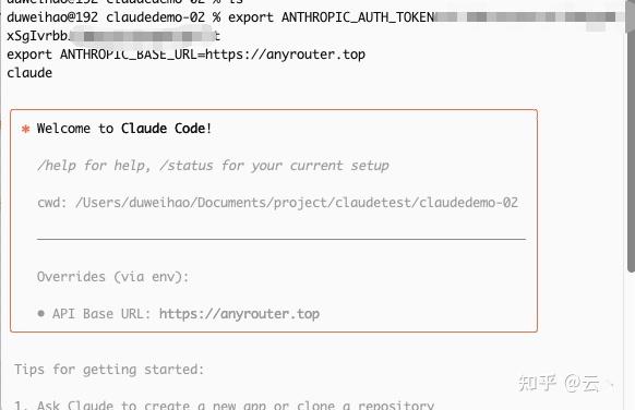 讯享网cd your-project-folderexport ANTHROPIC_AUTH_TOKEN=sk-… export ANTHROPIC_BASE_URL=https://anyrouter.topclaude